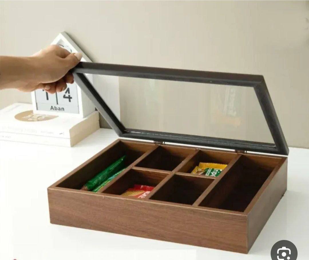 ناموجودجعبه تیبگ ۶ خانه چوبی | درب شیشهای + نظمدهنده دمنوش